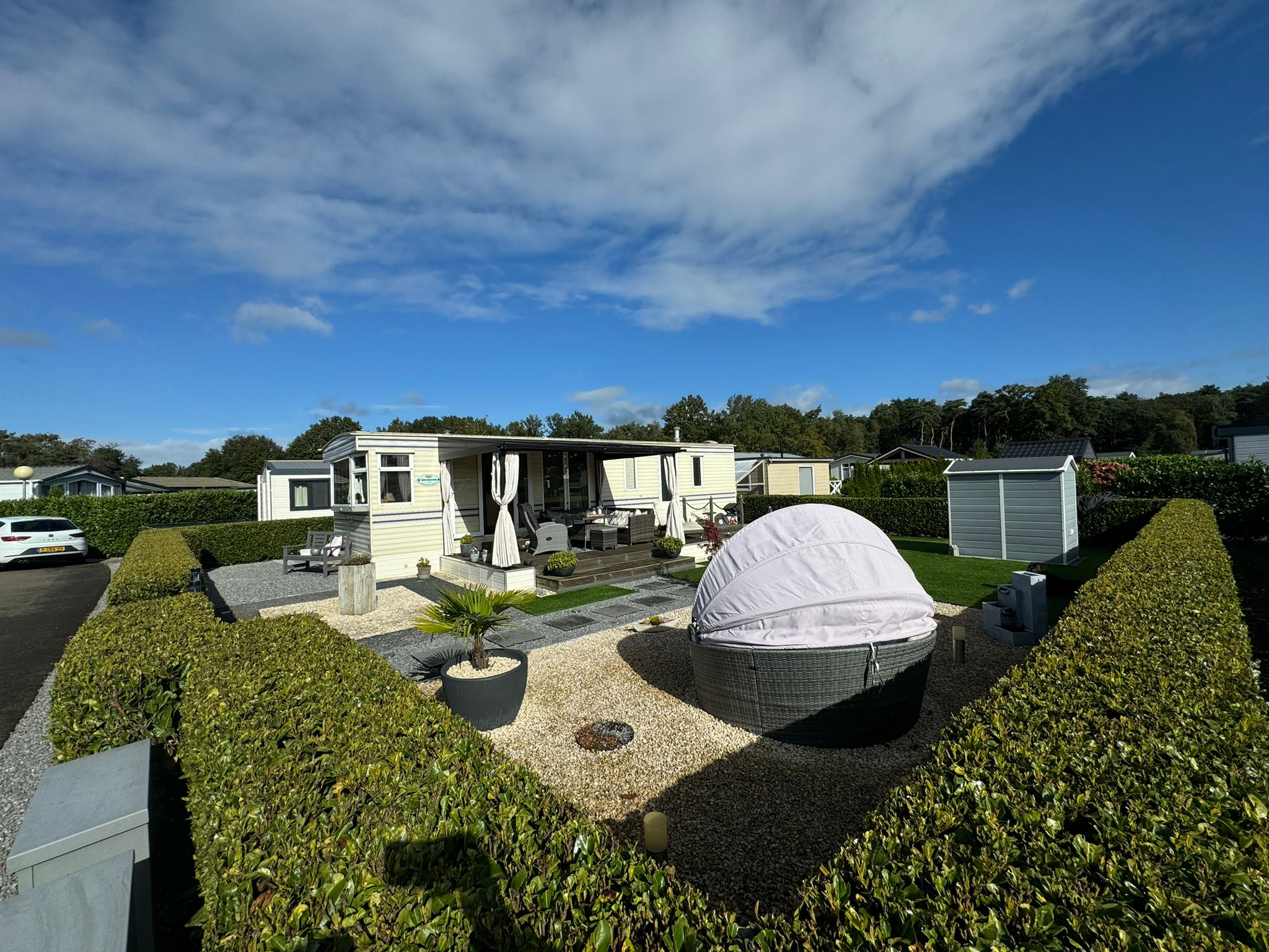 * Mobilheim mit Überdachung