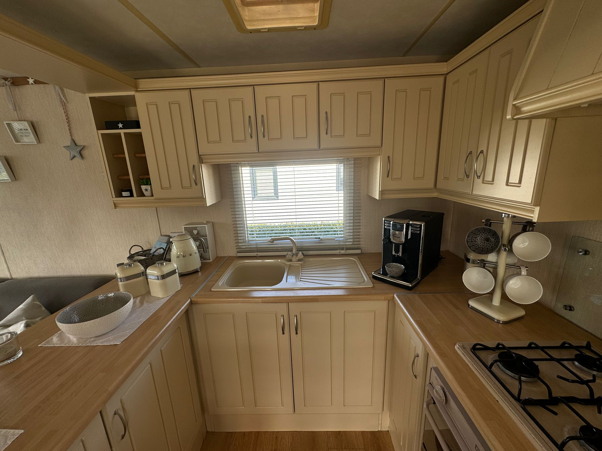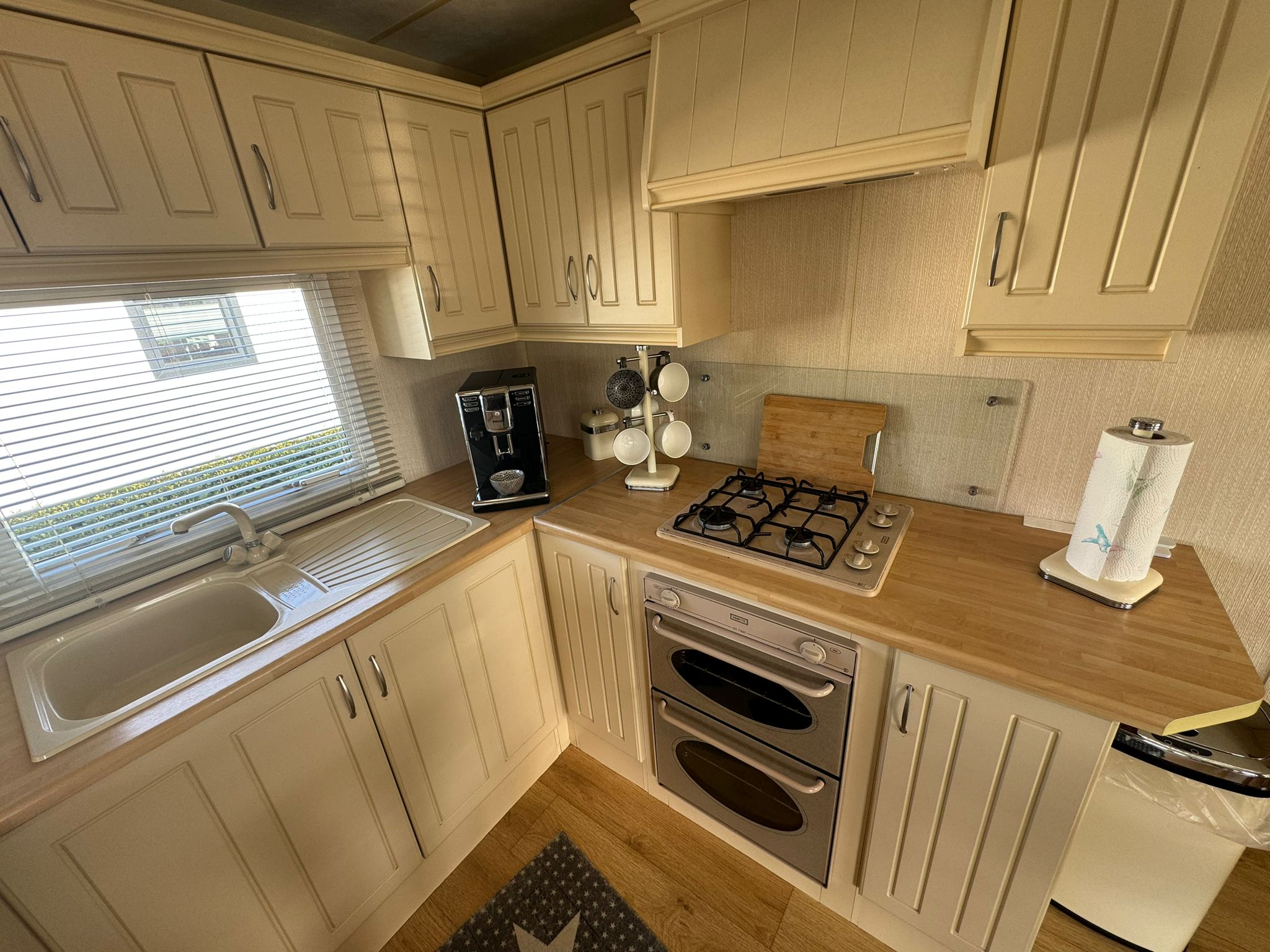 * Küche mit Gasofen, Backofen und Kühlschrank